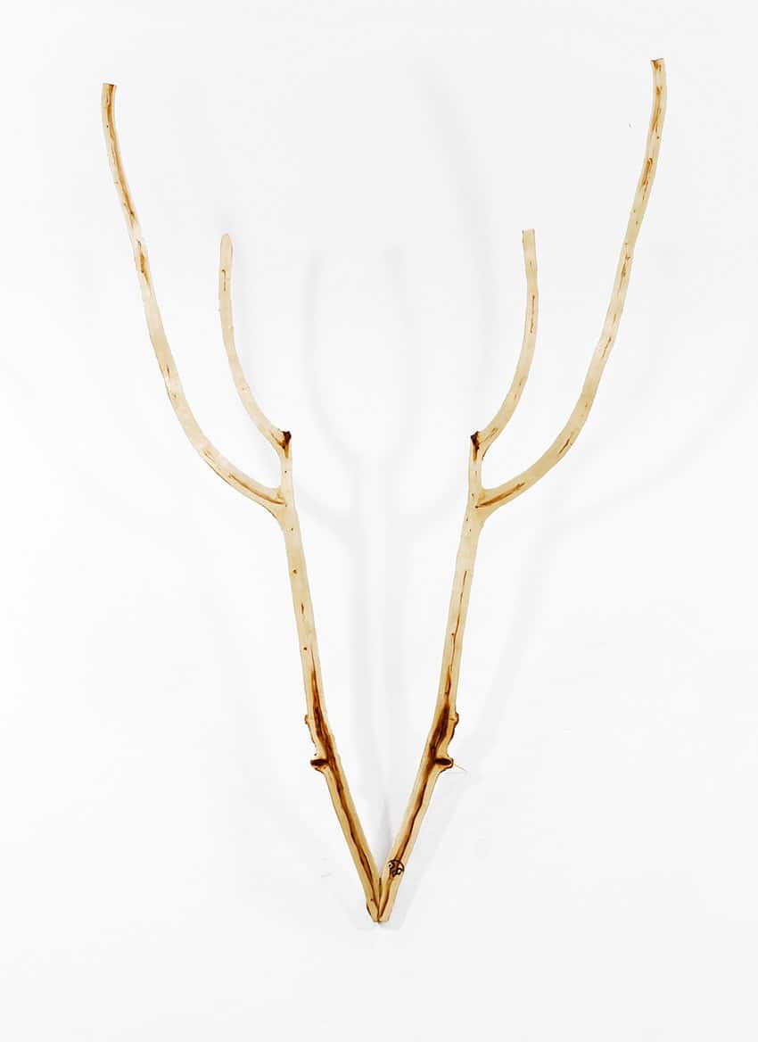 Het maken van een Geweldig Gewei vraagt tijd en geduld. Het begint al bij het vinden van de juiste tak – soms duurt dat weken. Wanneer Timo er een half gewei in kan zien, met verhoudingen die kloppen, durft hij de zaag er in te zetten.