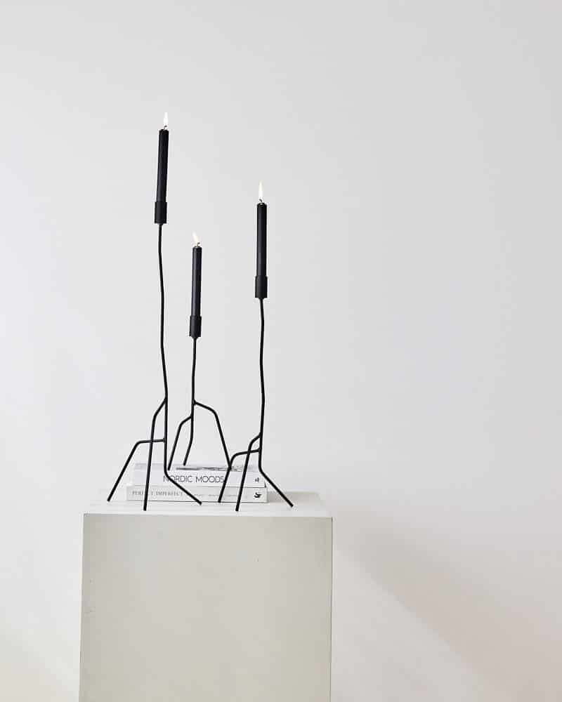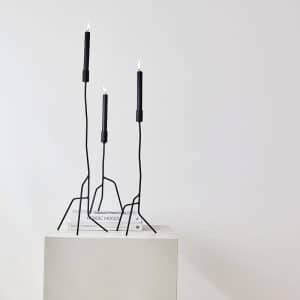 De dunne kandelaar in zwart staat prachtig op je tafel solo en in de mix met diverse groottes geeft het ook nog eens een speels effect. Ook deze kandelaar is met de handgemaakt. De lasnaden zijn afgewerkt maar wel zichtbaar zodat je de liefde en ambacht in het ontwerp terug ziet.